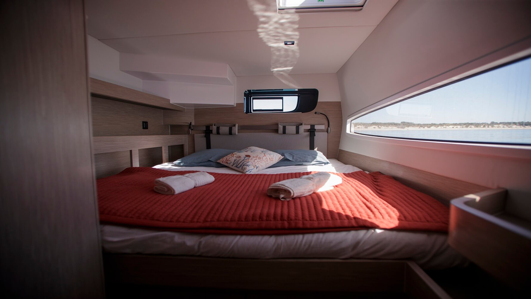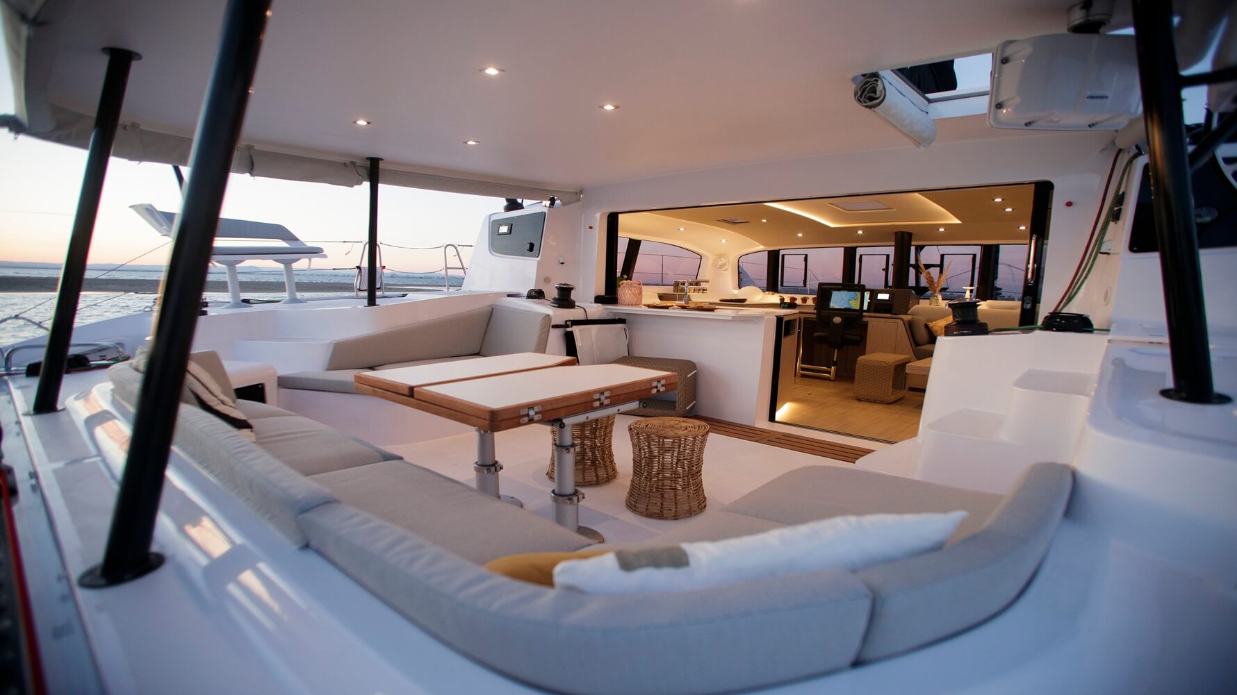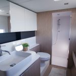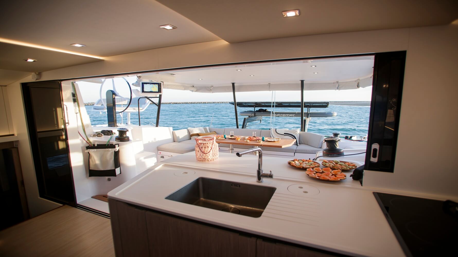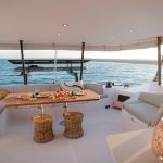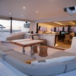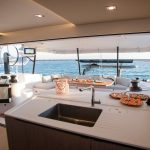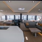 This boat is a bright, bluewater cruising catamaran designed for comfort and connection. Spacious, flowing living areas encourage easy movement and social gatherings, while the fully opening bay window links saloon and cockpit. The open-plan galley serves as a central hub, perfect for shared moments throughout the day.