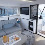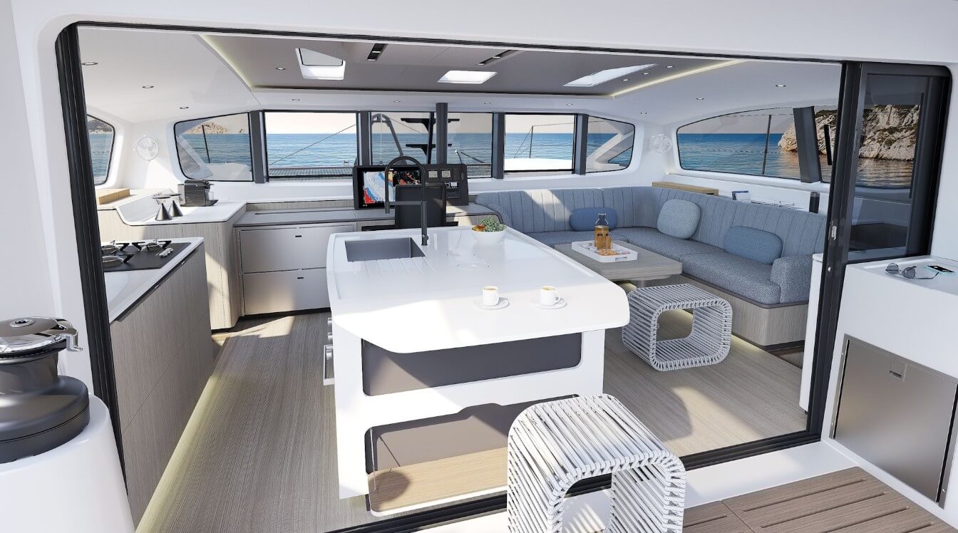 Designed for true offshore living, the Outremer 57 features durable volumes with integrated storage, accessible technical areas, and generous load capacity for long voyages. Seamless saloon-to-cockpit flow, excellent ventilation, and a redesigned central island and galley create a self-sufficient, comfortable yacht that is easy to live aboard at sea or at anchor.