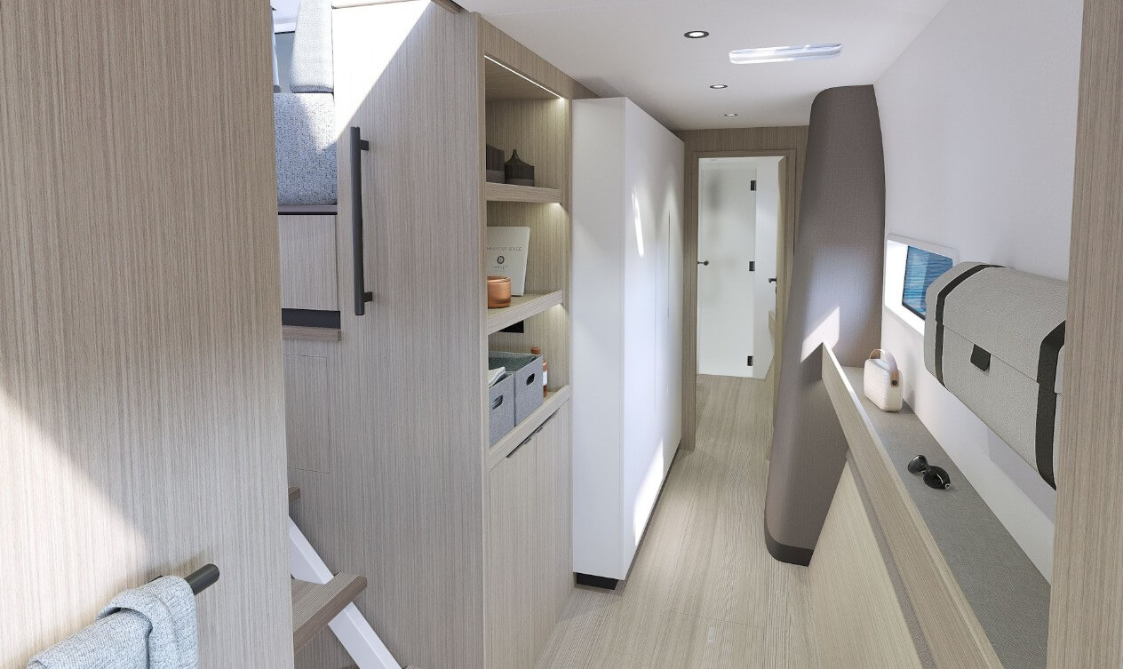 With daggerboards, controlled weight, and an efficient sail plan derived from the Outremer 55, the Outremer 57 delivers strong performance even when fully loaded. Stable, responsive, and easily handled from the cockpit, it offers confident sailing with a small crew—ideal for serious offshore cruising.