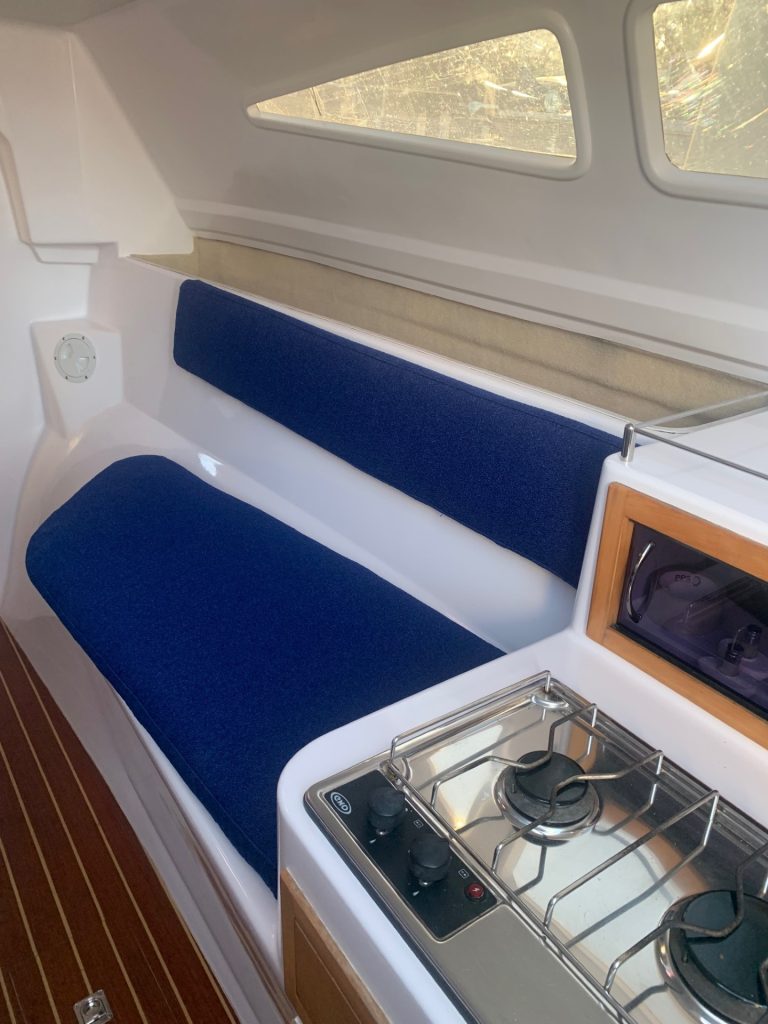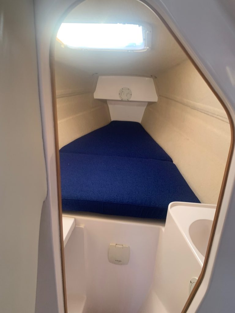 The saloon area is finished with a clean, white GRP liner. The galley is larger with additional drawers and ample storage. The forward and aft bunks are now longer and wider giving more generous accommodation area for crew. The 970 also caters for privacy with a fully enclosed head and a 2nd shower at the swim ladder