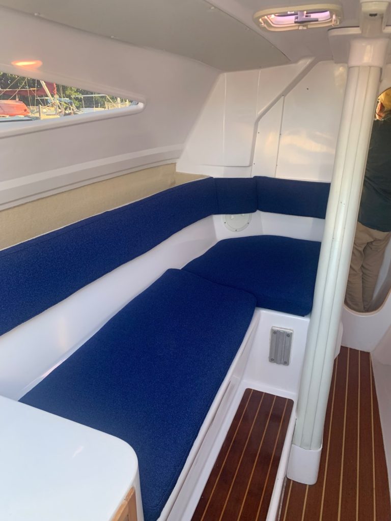 The more functional cockpit has been extended and an aft deck mainsheet track facilitates free movement within the cockpit. The raised, side seating increases both comfort and visibility (a great design feature taken from the highly successful C37). The Lagun Fully Adjustable Dining table can be used inside or out thanks to mounts provided.