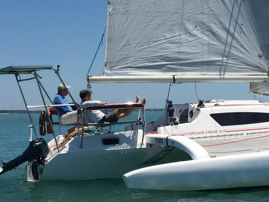 Built to International Standards in Vietnam, this is the first completed of this model and sent to Australia by container. Assembled personally by Paul Koch owner of Corsair Marine at the time, now building Rapido Trimarans.